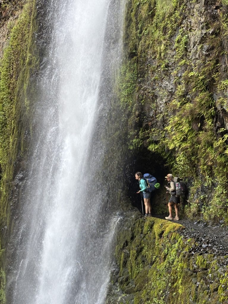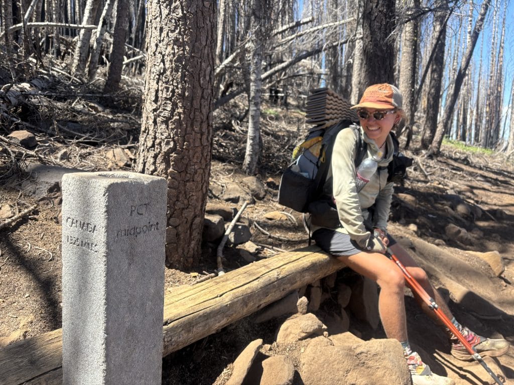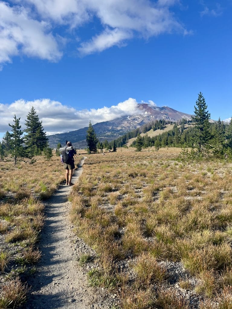 After a month on trail, things started to fly by. Northern California had its challenges considering the large burn zones from the Dixie Fire, but the beauty remained unescapable. One of the most unforgettable moments on the trail was seeing Mt. Shasta for the first time. The second largest mountain in the Cascade Range, it loomed over all its surroundings, snow capped and alone. We were able to see this mountain for the next 200 miles of hiking and even through the smoke in Oregon. Crossing that first border was a rejuvenating moment for us and I was more than excited to continue up the Cascade Range and see more spectacular peaks such as Shasta. Oregon felt even faster than NorCal, the terrain forgiving and weather more than favorable. We were able to push some of our highest mileage days there, flying through gorgeous areas such as the Three Sisters Wilderness and Mt. Jefferson Wilderness. When we reached Mt. Hood, we were able to meet up with our friends from school, Kate and Isabel, who did 4 days on trail with us until the Washington Border.